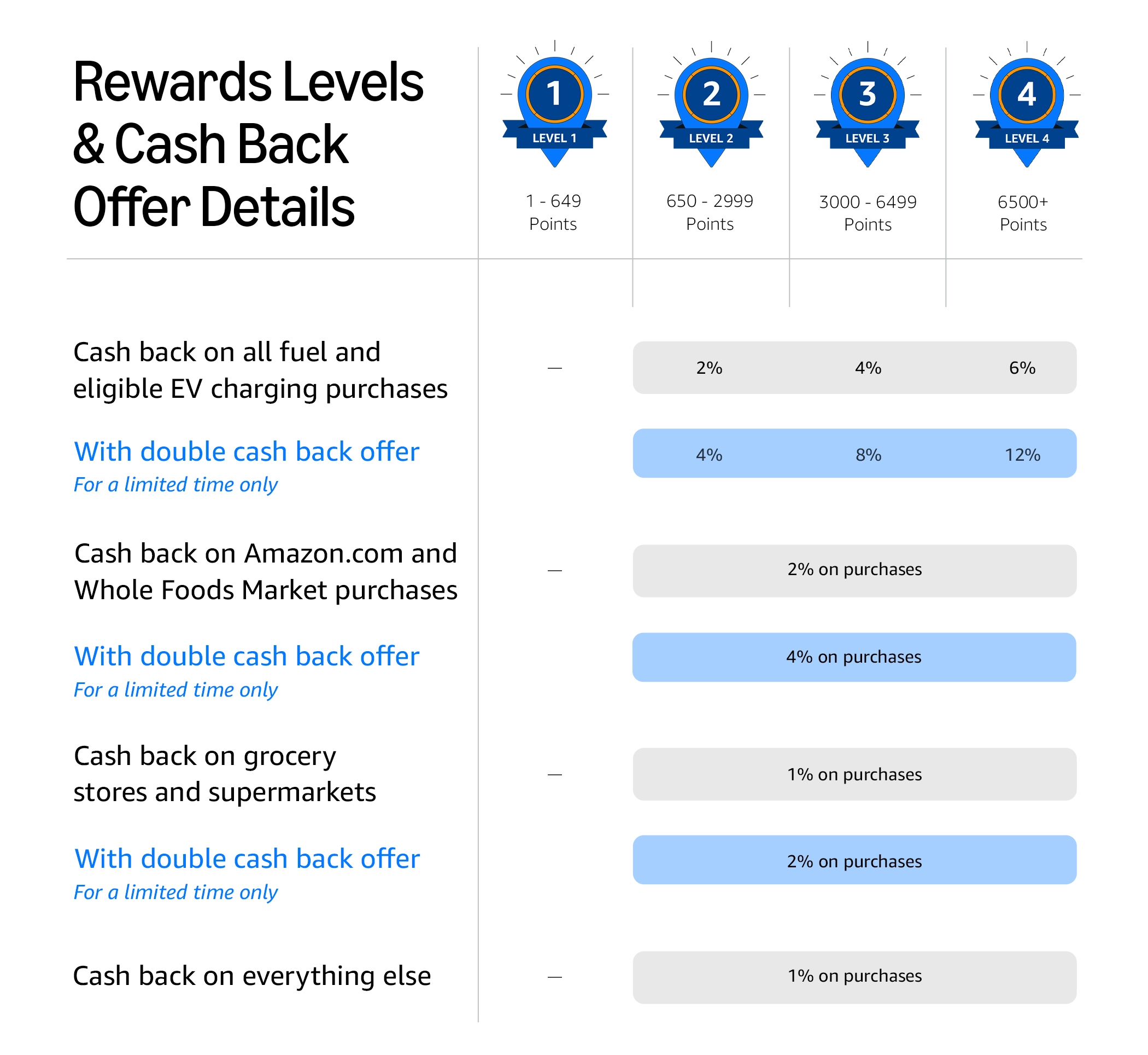 3. Earn 2% cash back at grocery stores and supermarkets, 11/15/25 through 12/17/25. Grocery purchases made at gas stations, convenience stores, warehouse clubs, discount stores, and super stores will earn 1% cash back. Stores may not be properly categorized by Visa to receive 2% cash back. This means that sometimes a purchase may not earn additional cash back. Amazon is not responsible for categorizing merchants.