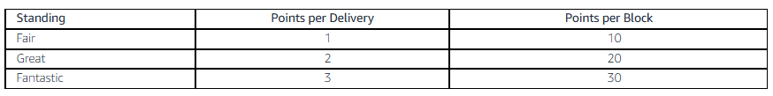 For delivery advice that can help you get the standing and Rewards points you want, visit the “Advice” section in the “Standing Details” page in the Amazon Flex app. You can also check out our blog post with delivery suggestions from top delivery partners.
