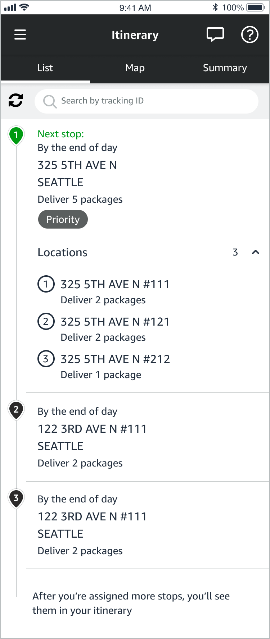 Grouped stops are stops with more than one delivery location, such as multiple apartments within the same complex. You now have more visibility into updated details that show the number of locations you need to visit and each location’s address within your “Itinerary List” in the Amazon Flex app. As you approach a grouped stop, the app will also display pins on your map for all delivery locations within the stop. This helps you more easily determine the best place to park to make your deliveries.