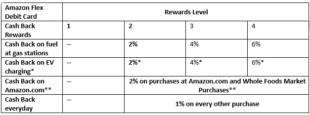 - You must have an Amazon Flex Debit account opened in good standing, be a delivery partner with an active Amazon Flex account in good standing, and have achieved Rewards Level 2 in order to start earning Cash Back.